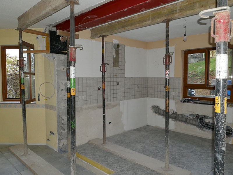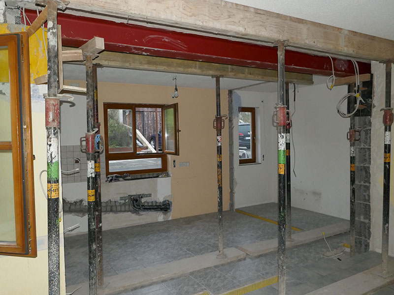 - Rohbauarbeiten – statische Bewertung, Abbruch von tragenden und nichttragenden Wänden sowie neuer Stahlträgereinbau: Bauunternehmen Schmitt GmbH