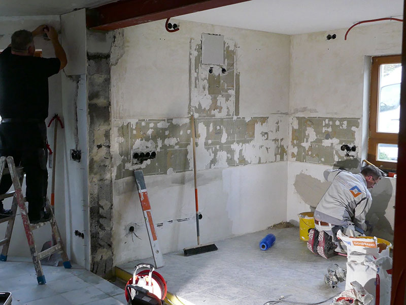 - Verlegen der Elektroinstallation aufgrund von Wandabbrüchen, Elektrifizierung der Rollläden und Montage von hochwertigen Lampen: Kestler Elektro GmbH